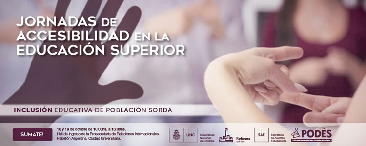 Los días 18 y 19 de octubre, de 10 a 16, se realizarán las Jornadas sobre Accesibilidad en la Educación Superior, destinadas a estudiantes, egresados, docentes, equipos de apoyo a la tarea docente y al personal no docente de la UNC. El objetivo de las Jornadas es socializar, debatir y reflexionar sobre las diferentes políticas de inclusión educativa de personas en situación de discapacidad que se vienen desarrollando en la UNC.